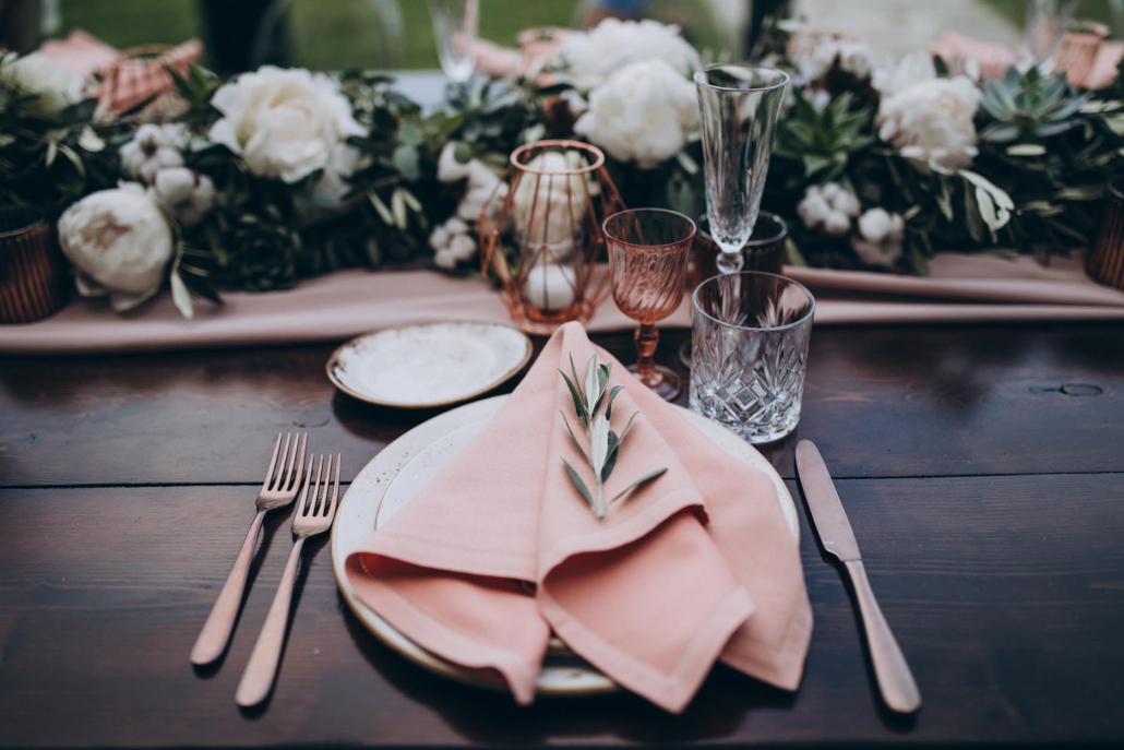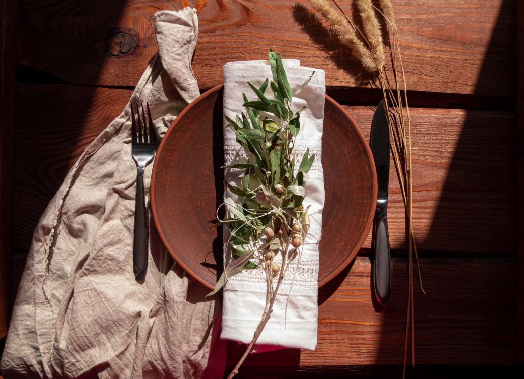 En rustik borddækning skaber en varm og indbydende stemning. Brug grove materialer som linned eller jutestof til dugene, og dæk bordet med keramikservice og bestik i antik stil. Du kan også bruge træborde uden duge og dekorere med små træstubbe, vilde blomster og glasvaser. For et ekstra personligt præg kan du tilføje håndlavede bordkort i træ eller keramik.