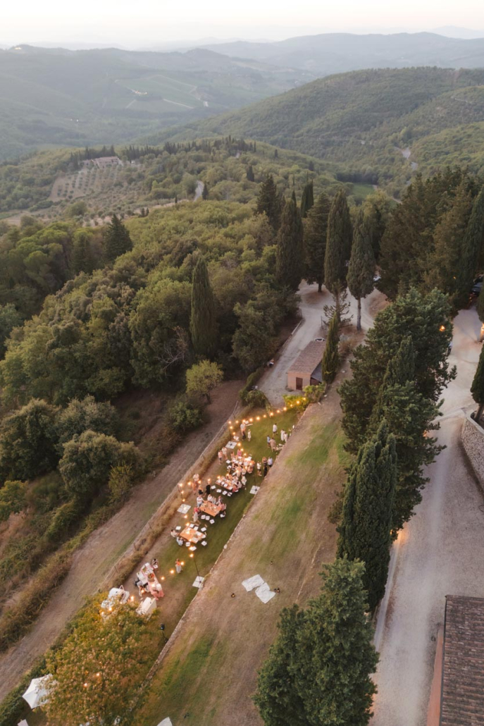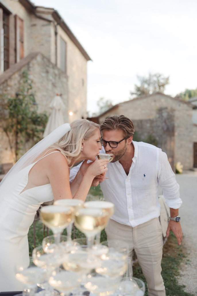 Vi havde selv deltaget i destination weddings i både Frankrig og Australien og elskede det intime og afslappede ved at være samlet over flere dage med alle gæsterne. Det skaber en helt anden, dybere forbindelse mellem gæsterne, når man har mere tid end blot tre timers smalltalk til en middag. Den oplevelse ønskede vi også til vores bryllup. Valget faldt naturligt på Toscana – en region fyldt med charmerende middelalderbyer, nem adgang fra flere lufthavne og utallige smukke venues.