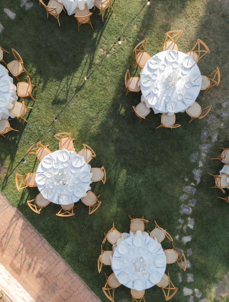 Både Alex og jeg arbejder i virksomheder med en stærk grøn profil, så det var vigtigt for os at inkludere bæredygtighed i brylluppet. Vores koordinator, Cecilia fra Righe & Pois, specialiserer sig i bæredygtige bryllupper, og hun hjalp os med at træffe miljøvenlige valg. Vi valgte for eksempel at samarbejde med lokale leverandører for at minimere transportens miljøpåvirkning, og vi genbrugte dekorationer over flere dage. Vores gæster blev opfordret til at køre sammen eller tage biltog til Italian, og vi søgte også at skabe cirkulær økonomi ved at videresælge dekorative elementer til andre brudepar efter brylluppet.