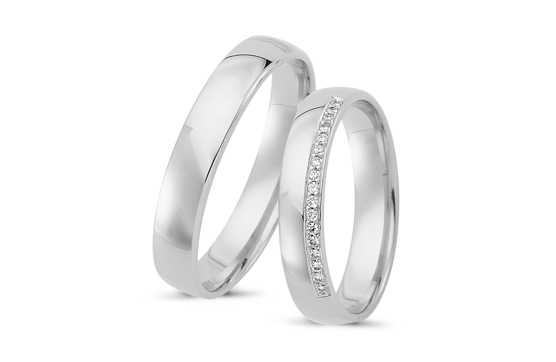 Ringe i 14 karat hvidguld med diamanter. Ringene er fra design-selv konceptet CLASSIC by NURAN.